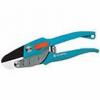 Ziehender, glatter Schnitt. Schneidmesser mit Präzisions-Keilschliff, antihaftbeschichtet. Kraftsparende Hebelübersetzung. Einhand-Sicherheitsverschluss. Kleines Modell. Mit Standardgriff. 4-Farb-SB-Infokarte