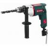 Aluminiumdruckguß-Getriebegehäuse Hohes Drehmoment Umschaltbar auf Linkslauf mit patentierter Drehrichtungsumschaltung Bohrspindel mit Innensechskant für Schrauber-Bits. Bit-Spannbuchse. Zahnkranz-Bohrfutter Kabeltülle mit Aufnahmen für Bohrfutterschlüssel, Schrauber-Bits und Bit-Spannbuchse Metabo S-automatic Sicherheitskupplung Abschaltkohlebürsten Variospeed (V)-Vollwellenelektronik Langer Handgriff Drehmoment 35 Nm Vergleichbare Gerätekennwerte Bohrdurchmesser in Stahl 16 mm Weichholz 40 mm Leerlaufdrehzahl 0-550 min-1 Nennaufnahme 620 Watt Abgabeleistung 360 Watt Drehzahl bei Nennlast 330 min-1 Spannhalsdurchmesser 43 mm Bohrspindelgewinde 1/2"-20 UNF Bohrfutter-Spannweite 1,5-13 mm Bohrspindel mit Innensechskant 1/4" (6,35 mm) Maschinengewicht 2,1 kg