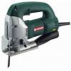 Lebensdauer Robuste Getriebe- und Motorauslegung für harte Arbeitseinsätze Verschleißfestes Aluminiumdruckguß-Getriebegehäuse mit guter Wärmeableitung zum Schutz vor Überhitzung Abschaltkohlebürsten verhindern, daß bei abgenutzten Bürsten der Kollektor beschädigt wird. Leistung und Arbeitsgeschwindigkeit Besonders geeignet für große Materialdicken: 105 mm in Holz Niedrig liegende Sägeblatt-Stützrolle mit Führungsnut - für besonders exakte Schnitte Schnellarretierung der Führungsplatte für Schrägschnitte mit den Winkelstellungen 15, 30 und 45° Vario-Constamatic (VC)-Vollwellenelektronik - für anwendungsspezifische Anpassung der Hubzahl 5-stufig einstellbarer Pendelhub für besonders hohe Schnittleistung und gute Kurvengängigkeit Spanreißschutz in der Führungsplatte für ausrißfreie Schnittkanten Drehmoment 7 Nm Bedienung und Ergonomie Bügelgriff für bequeme Einhandbedienung der Maschine Optimale Handhabung durch ergonomisches Design der Gerätekapsel Hochschiebbarer Greifschutz und Schutzglas - zum Schutz des Anwenders vor unbeabsichtigtem Berühren des Sägeblattes Hohe Absaugleistung durch speziellen Absaugstutzen Depot für Sechskantschlüssel Blaseinrichtung für freie Sicht auf die Schnittstelle Extra glatte Fußplattenoberfläche verhindert das Zerkratzen von empfindlichen Werkstückoberflächen Kann zur ortsfesten Verwendung in den Metabo Sägetisch 34 810 eingebaut werden. Lange schnurgerade Schnitte mit der Führungsschiene 31250 Vergleichbare Gerätekennwerte Größte Materialdicke Holz 105 mm NE-Metalle 30 mm Stahlblech 10 mm Hubzahl bei Leerlauf 1000-3000 min-1 Nennaufnahme 710 Watt Abgabeleistung 440 Watt Maschinengewicht 2,6 kg